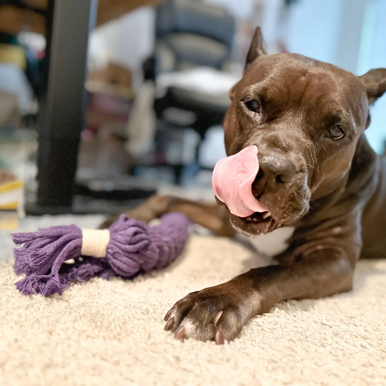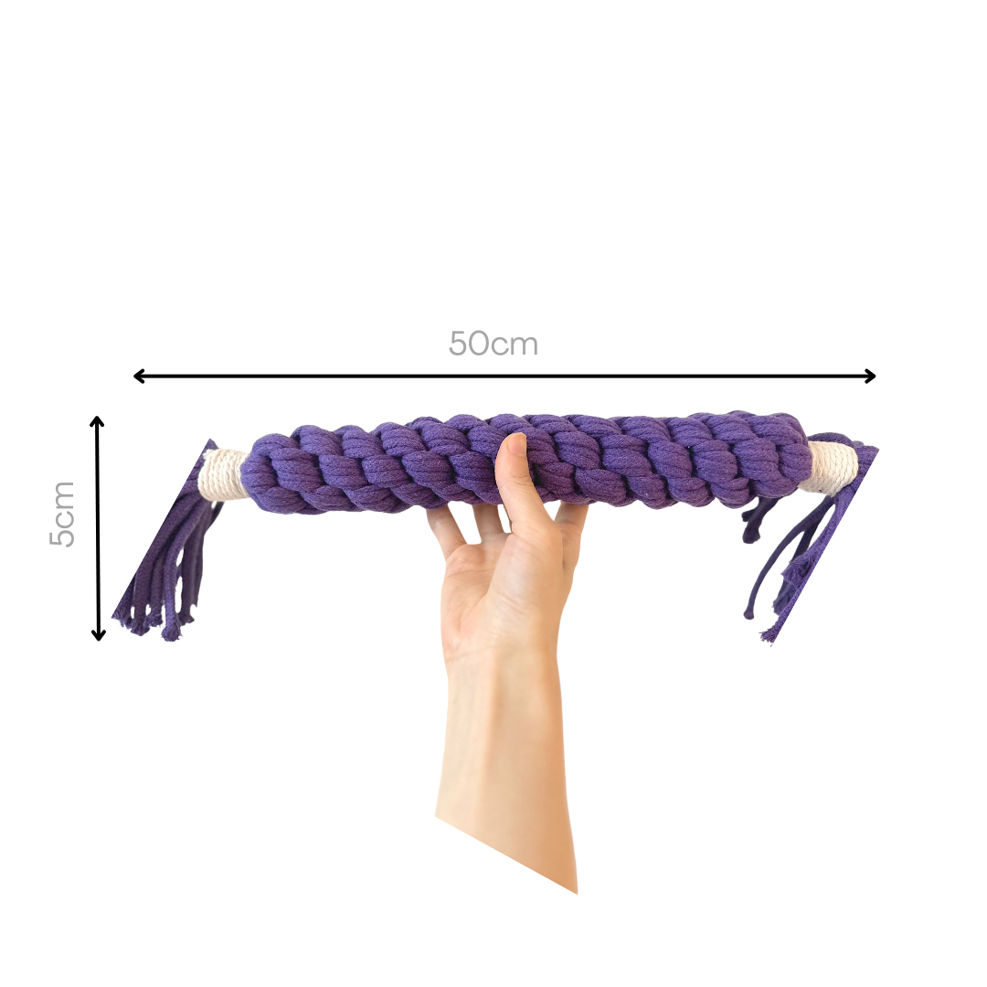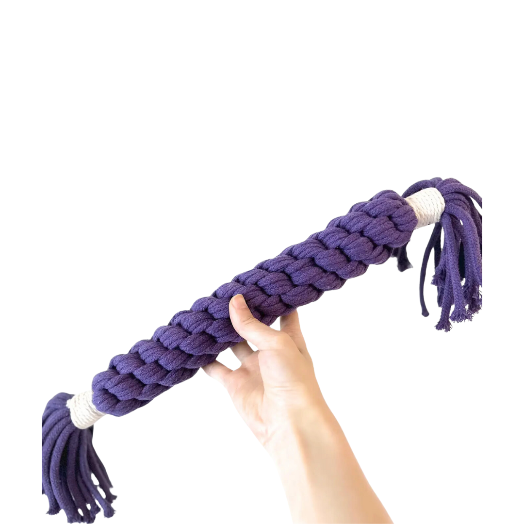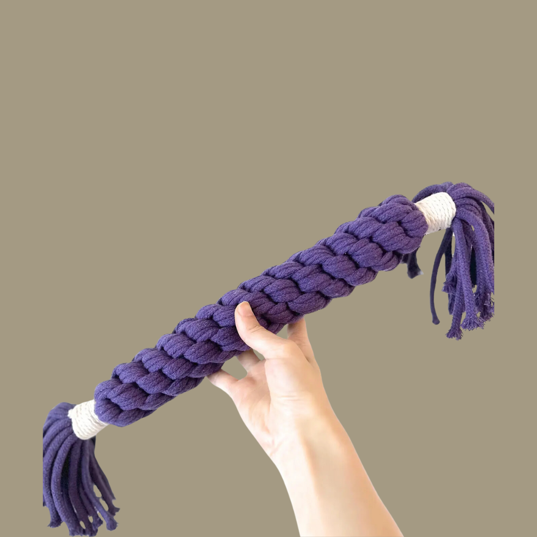 Introducing the Handmade Jumbo Macrame Rope Candy for Big Dogs. Crafted with sustainable materials, this durable accessory adds style and eco-consciousness to your pet's look. Its vibrant colors and intricate knots make it a standout piece, while its natural fibers ensure safety and reduce environmental impact. Choose this jumbo macrame rope candy for a sustainable and stylish choice for your big dog.
